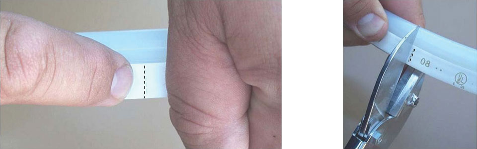 LED Neon Flex. This will be designated by a vertical dashed line. Using heavy-duty sheers or a utility knife, make an even cut through the LED Neon Flex exactly on the mark. If you are off the mark the product can be damaged.
