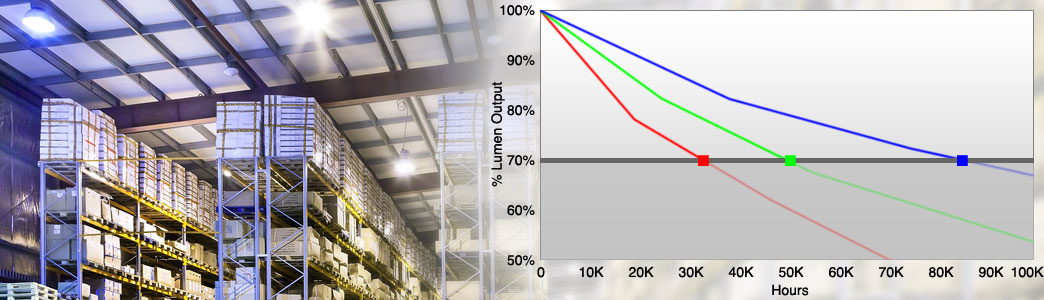 There are obviously a number of factors that can influence your LED lifespan: how often they’re turned on and off, environmental conditions, heat levels, and fixture design all play a role. But understanding lumen maintenance and the ways of measuring it will help give you a good idea of how long you can expect your fixtures to last. Make sure to check all the numbers on your next LED lamp so you can gauge how it will work in your system.